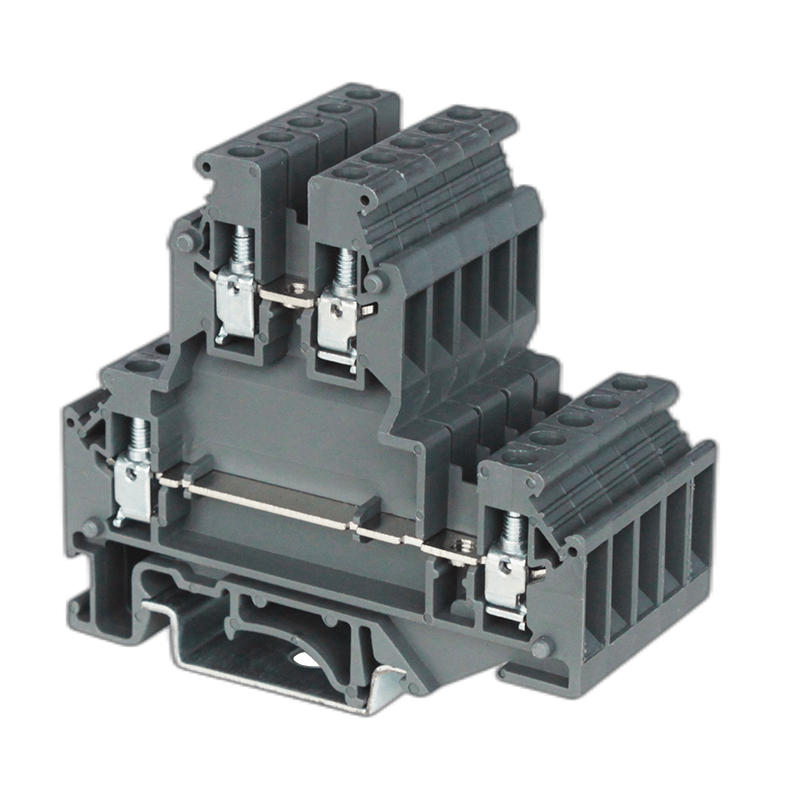 is double level Terminal Block with a grounding point for terminating grounding cables on the lower level of the terminal block while